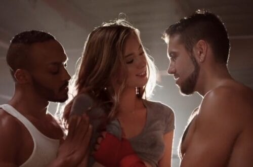 It’s so damn hot to see them build the story about a current crush and an old one. That makes me horny to watch. I adore the dark-haired woman’s triangle between her legs. And I like seeing the chemistry between the women. With the man following every step they take.☺️